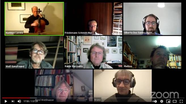 Die Teilnehmerzahl des MOS ist weiter gewachsen, diesmal waren acht aktive Mitwirkende permanent dabei, eine Teilnehmerin nutzte die Möglichkeit, den YouTube-Stream zu verfolgen und für eine Wortmeldung vorübergehend auf die Zoom-Plattform zu wechseln. Dort, wo sich wie schon zuletzt Musiker und Komponisten aus Deutschland und Europa versammelt hatten, ging es diesmal besonders lebhaft zu.
