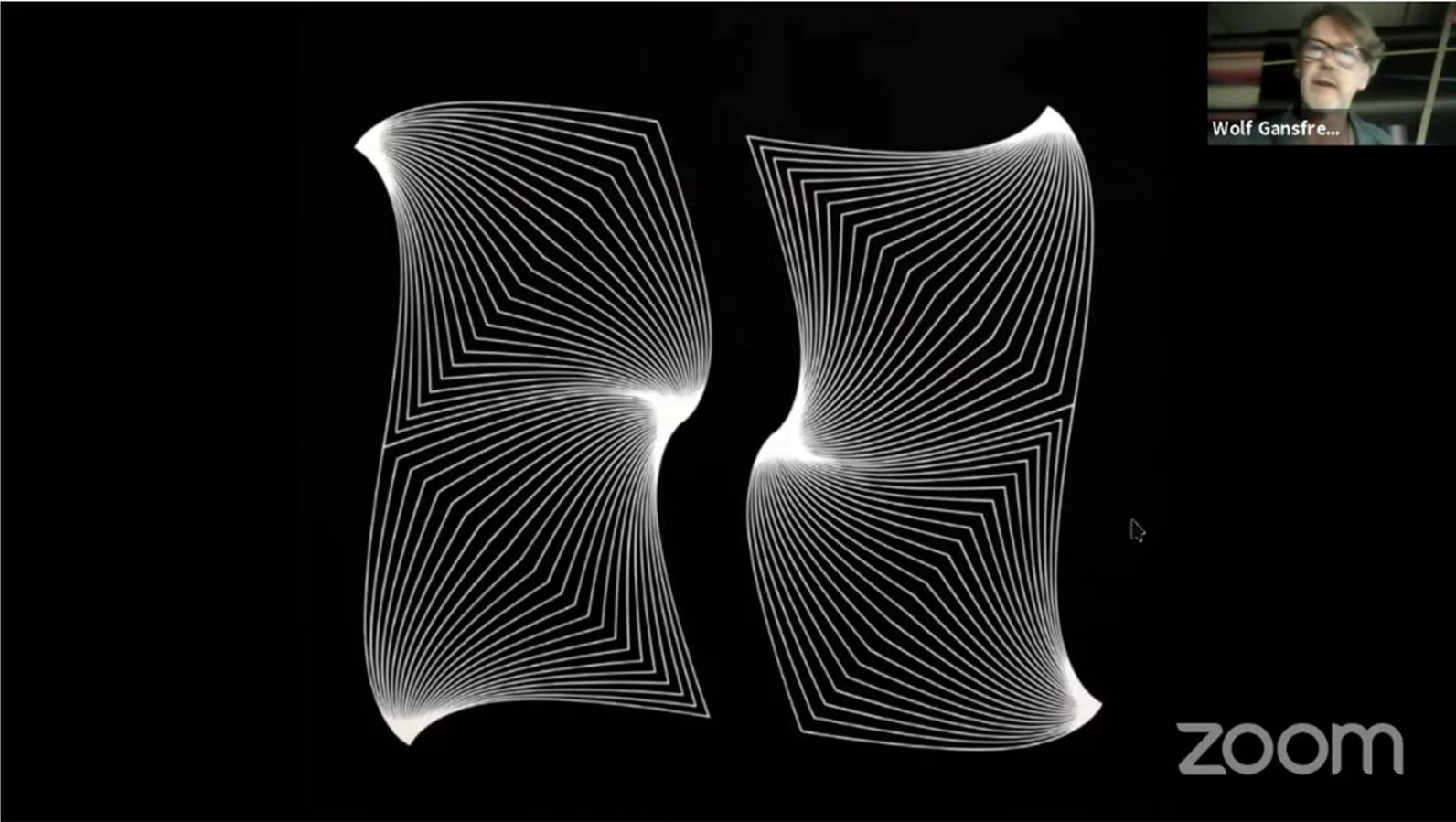 Mit einigen Photos und Videos wurde Bosses Vortrag anschaulich. Den Zusammenhang von Mathematik und Kunst verdeutlichte zum Beispiel die Konstruktion bzw. Herkunft von Paraboloiden und daraus folgend die Ableitung von Figuren und Strukturen. Wolfgang Bosse griff als Beispiel den Philips-Pavillon der Brüsseler Weltausstellung 1958 auf (Entwurf von Le Corbusier), an dem Iannis Xenakis als Architekt beteiligt war (dazu gibt es einen Artikel in der Zeitschrift Bauen und Wohnen, Ausgabe 13 von 1959, der online zu finden ist).