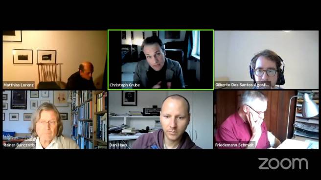 Faßt man die Sprachbedeutung und die Verknüpfung von Sprache und Ereignissen weiter, lassen sich Erinnerungspunkte, Fakten oder Begebenheiten ins Verhältnis setzen, die ad hoc nichts miteinander zu tun zu haben scheinen. Immerhin, erinnerte Christoph Grube, sei Corona nicht nur ein Auslöser für die Reihe der MOS gewesen, auch ein Gedicht aus Paul Celans erstem Band »Mohn und Gedächtnis« trage es im Titel. Die orphische Rhetorik von Celans »Corona« war zunächst ein Ausgangspunkt zum Verständnis oder zur Erklärung der Gedichte Paul Celans (oder zum Versuch, sich diesem zu nähern). Corona steht hier für Stillstand oder einen Haltepunkt, habe also die Bedeutung einer musikalischen Fermate.
