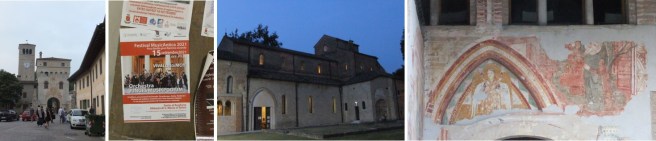 So wie gestern. Nach dem Auftritt im berühmten und bedeutenden Musikzentrum Verona (praktisch in Steinwurfentfernung von der Arena di Verona) war das JMP einen Tag später in der Benediktinerabtei Santa Maria in Sylvis zu Gast. Der Ort ist auch ohne Musik eine Reise wert – die Geschichte von Abbazia Santa Maria begann bereits im 8. Jahrhundert (Vorgängerbau), die erhaltenen Gebäude (Tor-Turm, Campanile etc.) wurden ab dem 10. Jahrhundert gebaut. Kulturhistorisch und künstlerisch bedeutsam sind besonders die Fresken der Abtei. Doch auch ringsum gibt es viel zu sehen, denn der ganze Komplex liegt malerisch zwischen Wassergräben. Das Konzert fand in Kooperation mit dem Festival di Musica Antica Barocco Europeo (Leiterin: Donnabella Busetto) statt – solche Kooperationen und die Unterstützung von Honoratioren und Sponsoren sind lebenswichtig für das JMP. Versteht sich von selbst, daß die Konzerte eine willkommene Gelegenheit sind, alle Beteiligten einmal zusammenzubringen. Ein kleiner Abendempfang gehört daher oft dazu – auch das ist eine neue Erfahrung, die das JMP vermittelt.