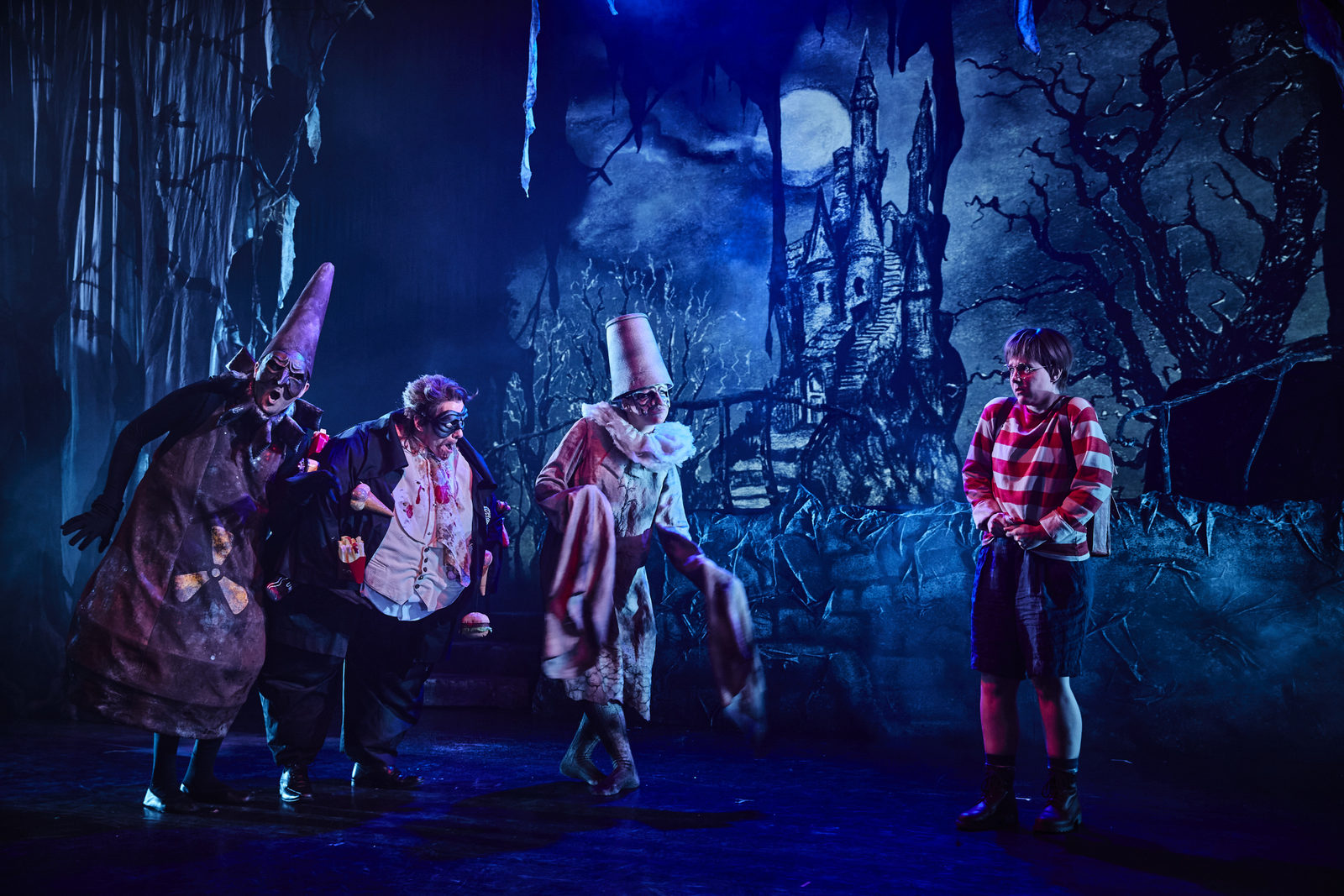 Die Semperoper hat Paul Maars 2008 erschienenes Kinderbuch auf die kleine Bühne gebracht, Freitag war Premiere auf Semper Zwei. Die Inszenierung in der Regie von Annika Nitsch (Dramaturgie: Bianca Heitzer) überzeugt vor allem mit ihrer märchenphantastischen Bilderwelt, die einem Gruselcomic entsprungen scheint. Ein Zauberwald, dessen Bäume lange Äste herabhängen lassen – oder sind es Spinnweben, Gespensterarme? Ein Eisentor, eine Fledermaus, ein wunderliches Schloß, alles düster und dunkel, dazu werden vorab vom Band wundersame Geräusche eingespielt – ein Nachtvogel ruft, und das Tor quietscht in den Angeln. Auch die Kostüme (wie das Bühnenbild von Linda Siegismund) sind herrlich, vor allem die drei miesen, fiesen Kerle – fast könnte man sie gern haben, so schön sind sie gestaltet!