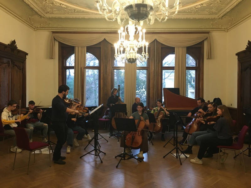 Interessant waren bereits die Proben. Nachdem zuvor jeder für sich seine Stimme studiert hatte, hieß es da nämlich, alle zu einem Ensemble zu vereinen. Dirigent und Cellist Massimo Raccanelli Zaborra fügte die Stimmen umsichtig zusammen und blieb stets im Austausch mit den Schülern und Kollegen (dritter Maestro: Alberto Busettini / Cembalo). Es zeigte sich: Dirigieren, Anleiten besteht nicht im Bestimmen allein, sondern schließt Kommunizieren und Annehmen mit ein. Erst so entstehen Klang und Lebendigkeit, wenn Diminuendo, Ritardando und Accelerando im Sinne des Werkes verstanden und umgesetzt sind. Lebhaftigkeit und Frische lassen sich eben nicht erzwingen oder anweisen, sie müssen aus einer Selbstverständlichkeit erstehen.