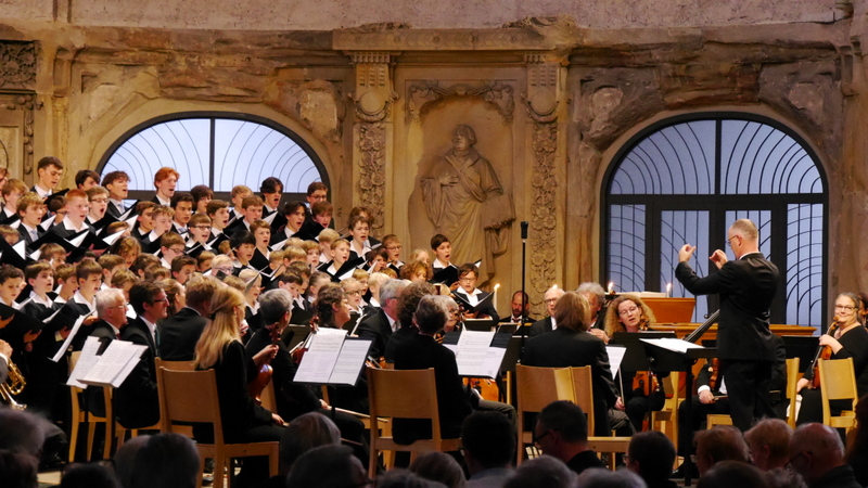 Solcher Momente gab es noch einige, und Indizien, die für einen glücklichen Beginn der neuen Amtszeit sprechen: die Kruzianer Adam Eckhardt (Alt) und Theo Krautz (Sopran) hatten in Johann Sebastian Bachs Kantate zum Michaelisfest »Herr Gott, dich loben alle wir« (BWV 130) Soli. Beider Vortrag war von einer Sicherheit geprägt, einem Selbstbewußtsein ohne bemühtes Forcieren, das bei so jungen Sängern nur beeindrucken konnte. Theo Krautz‘ Duett mit Henning Jendritza im Rezitativ »Wohl aber uns, daß Tag und Nacht« gehörte ebenso zu den ungemein berührenden, ja beflügelnden Momenten. Daß Henning Jendritzas Tenor an Schönheit nichts zu wünschen übrigließ, an Verständlichkeit jedoch sehr viel, war eigentlich das einzige, was musikalisch nicht glücklich gelang an diesem Nachmittag, der noch ein weiteres Mal durch das Dresdner Amen (Stichwort: Liturgie) in einen besonderen Rang gehoben wurde.