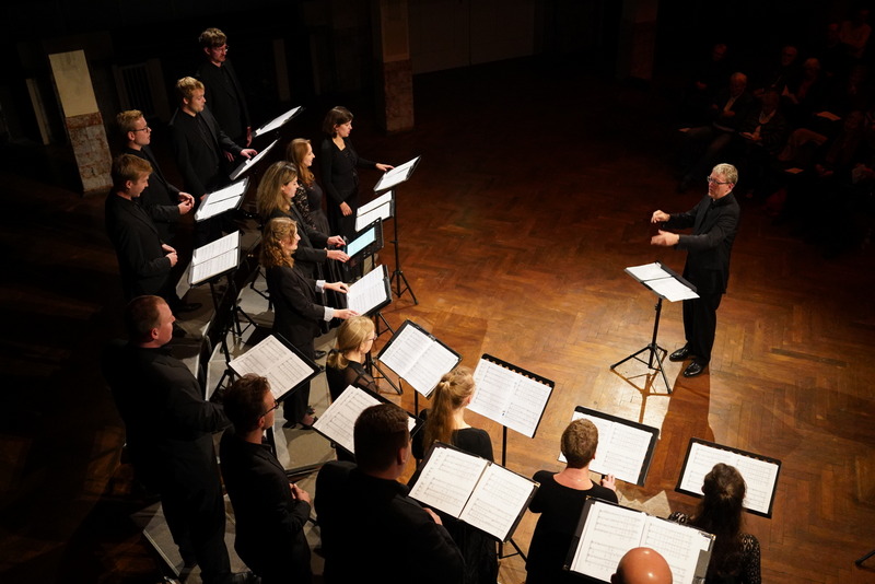 Nicht allein von Alter Musik in die Romantik führte das Programm, es nahm mit Ernst Kreneks »Herbst« erneut einen Komponisten auf, welcher dem Kammerchor beinahe ebenso vertraut sein dürfte wie Schütz, während zwei volkstümliche Lieder Max Regers (»Die Erde braucht Regen«, mit den Männerstimmen allein jedoch etwas verloren in der Folge sowie »Das Mädchen vom Lande«) sozusagen einen Gegenpol zum artifiziellen Lied darstellte.