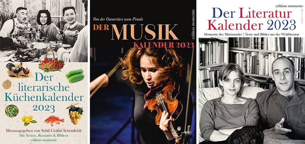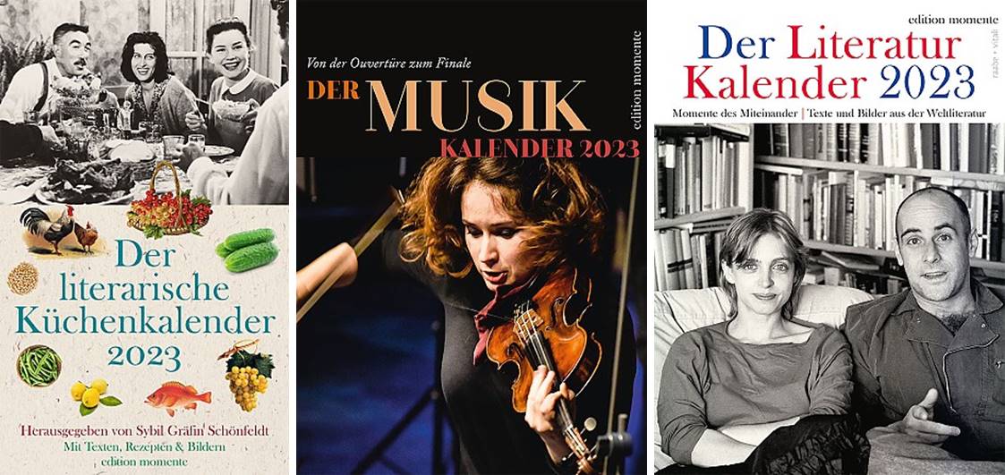 weitere Kalender der edition momente für 2023: Literatur Kalender, Musik Kalender, Kinder Kalender