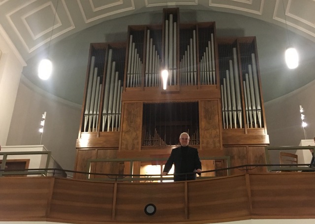 Zuvor blickte der Organist kurz zurück, überraschte manchen Besucher mit der Aussage (seine frühesten Erinnerungen als Kind aufgreifend), ein Staubsaugermotor funktioniere ja wie ein Orgelgebläse – nur umgekehrt – und war voll des Lobes über die Jubilarin: vor 50 Jahren wurde die Schuke-Orgel eingeweiht. In der damaligen Zeit gebaute Instrumente seien nicht unbedingt nur schön gewesen, diese jedoch schon, weshalb man sich, als in Jan Katzschkes Amtszeit eine Generalüberholung fällig war, mit der Dresdner Orgelbaufirma Wegscheider auch entschloß, diese im Stile einer Restaurierung auszuführen – alles sollte erhalten, nichts verändert werden.