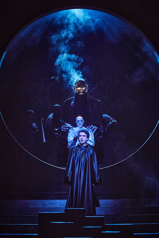 Ausgesprochen dunkel ist die Bühne, soweit sie nicht (zu Beginn und am Ende) von einem golden-orangenen Sonnen- oder Himmelslicht erhellt wird. Großartig sind die düsteren Szenen der Unterwelt mit all ihren geheimnisvollen und beängstigenden Gestalten – herrlich, wie sich hier Grau- und Schwarztöne abheben und vermischen, dazwischen brennen die Augen – gruselig!