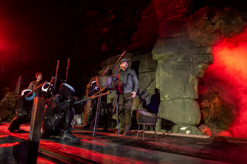 Was aber vor allem paßte, waren die Personenzeichnungen und ein interessanter Interpretationsansatz der »Lage«. Schließlich ist der »Freischütz« nicht irgendein Märchen oder nur eine volkstümliche Sage, sondern greift das Ende des Dreißigjährigen Krieges auf und stellt Fragen zur Gesellschaft. Manuel Schöbel nimmt vor allem die letzteren ins Visier und hat dies in der neuen Inszenierung des Rathener Traditionsstückes, der mittlerweile neunten auf der Felsenbühne, mit Anja Furthmann (Ausstattung) eindrucksvoll familien- und ausflugstauglich umgesetzt.