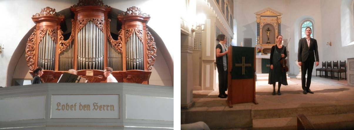 Zum Kirchweihfest erklang in Dittersbach-Eschdorf die kleine Silbermann-Orgel wieder einmal im Konzert. Florian Mauersberger, Kantor an der Stadtkirche St. Marien Pirna, übernahm die vierzehn Register, Ulrike Hofmann spielte dazu eine Barockvioline. Statt eines Programmzettels (was trotzdem schön gewesen wäre, schon um ihn abzulegen oder für spätere Recherchen zu verwenden) führte wie hier gewohnt Prof. Martin Strohhäcker musikalisch durchs Programm, während Kantorin Gudrun Strohhäcker die Gemeinde begrüßte und den Segen weitergab.