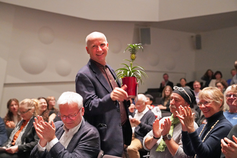 Und so fanden sich viele lebendige Belegbeispiele, auf die der Musikwissenschaftler Wolfgang Mende, der moderierend-laudatierend durch den Abend leitete, verweisen konnte. Claudia Schmidt-Kamer, Prorektorin für Künstlerische Praxis, erinnerte sich an einen ganz besonderen Moment unter den vielen: als es 2021 buchstäblich nichts gab, die Kultur nur in kleinsten Pflänzchen hier und da zaghaft blühte, da fand an der HfM Dresden ein ganzes Lachenmann-Festival statt!