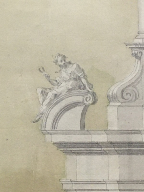 Dennoch ist gerade das Museale, das Hüten, Bergen, Schützen, Wiederfinden, Kuratieren […] Teil der Kulturlandschaft Dresden. Das Sächsische Landesamt für Denkmalpflege ist daran beteiligt, die Kulturgüter des Freistaates zu erhalten, historische oder wiedergewonnene Gebäude zum Beispiel. Eine der Grundlagen für diese Arbeit, aber auch für die Erforschung, nicht zuletzt der Landesgeschichte, sind die Dokumente des Archives im Landesamt für Denkmalpflege. Allein die Plansammlung umfaßt etwa 80.000 (!) Dokumente. Viele darunter sind selbst Kunstwerke, nicht nur im übertragenen Sinne. Neben originalen Architekturzeichnungen von Matthäus Daniel Pöppelmann und Julius Heinrich Schwarze werden Entwürfe von Gaetano Chiaveri in der Ausstellung gezeigt. Einige von Ihnen wurden eigens für die Ausstellung restauriert. Viele der Pläne verbinden graphische und zeichnerische Elemente – die einen geben exakt architektonische Vorgaben wieder, die anderen zeigen oder deuten an, wie eine Ausgestaltung, eine Deckenmalerei zum Beispiel, aussehen könnte.