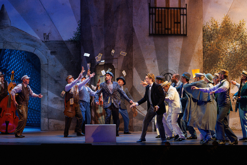 Getragen wird es zunächst von den Musikern der Staatskapelle, die mit schlanker Besetzung und vielen nur vom Cembalo begleiteten Rezitativen den roten Faden ebenso straff führen, wie sie Pointen herausarbeiten. Evelino Pidò ließ die musikalischen Lustbarkeiten blitzen und perlen wie Sekt in den Kelchen.