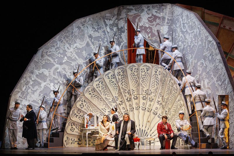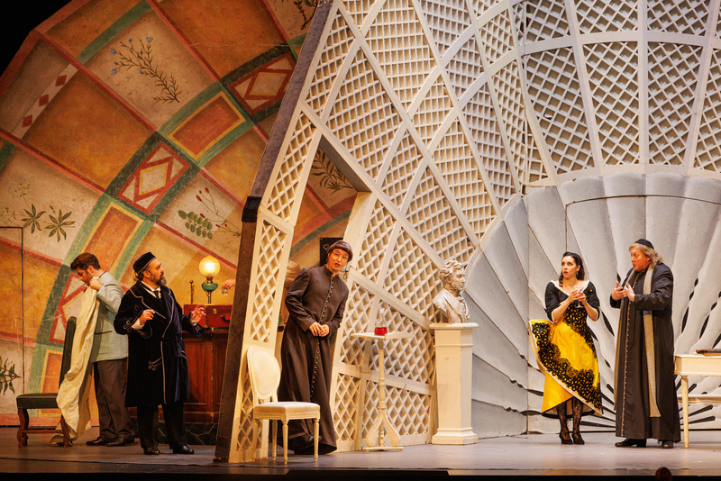 … und das hat sich auch jetzt nicht geändert! Dafür sorgen schon die Kostüme und vor allem die herrliche Drehbühne von Luigi Perego, die nach Baiser zu duften scheint. Grischa Asagaroff (Regie) hält nicht nur die Handlung in Schwung, sondern verbindet Musik, Spiel und Witz zu einem komödiantischen Lustspiel, an dem man sich ergötzen kann.
