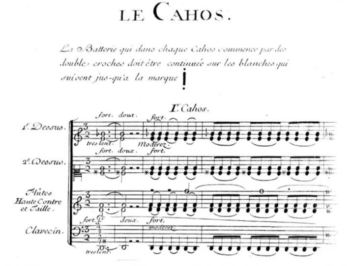 Das Werkbezieht sich auf die Elemente Wasser, Feuer, Luft und Erde und enthält Tanzsätze (Loure, Sicilienne …) wie in einer Suite. Im ganzen beschreibt es eine Schöpfungsgeschichte und beginnt – wie Haydn! – mit einem Chaos. Dieses wird mit sämtlichen Noten der d-Moll-Tonleiter dargestellt, die in einem Cluster gleichzeitig erklingen.