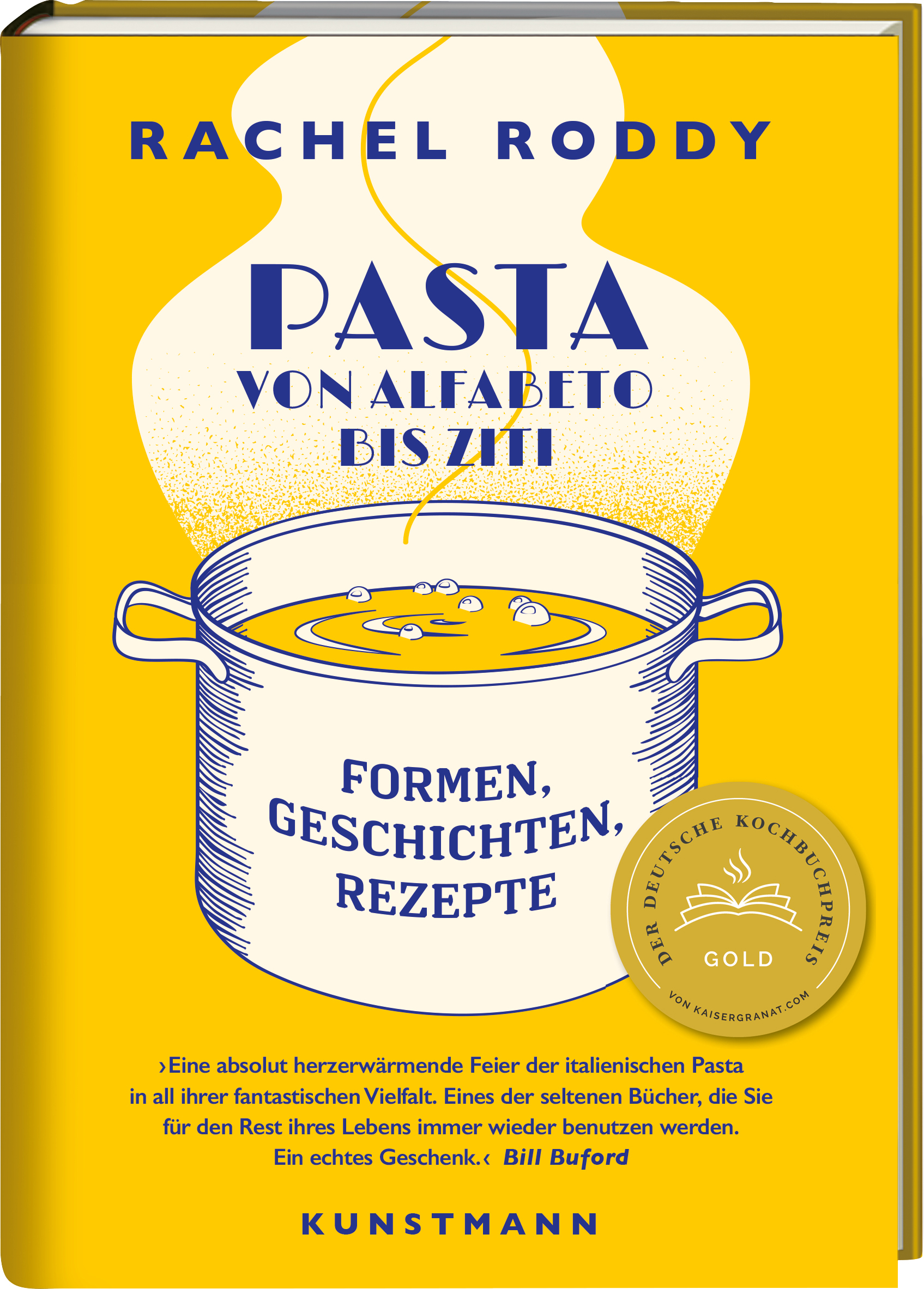 Rachel Roddys Italiensehnsucht muß ähnlich groß, wenn nicht größer als unsere gewesen sein, denn vor über bald zwanzig Jahren zog die Journalistin und Kochbuchautorin von London nach Italien, wo sie seither mit ihrer Familie lebt. Im Verlag Kunstmann ist ihr neuestes Buch erschienen, und es macht aus dem erfahrenen Italienbesucher und Nudelkoch einen echten Pastakenner, denn es fängt am wirklichen Ausgangspunkt an, beim Alphabet der Nudelformen. Zwischen 350 und 500 Sorten schätzt man (manche Quellen sprechen von bis zu 600), gibt es in Italien. Das Buch vereinigt immerhin an die zwanzig (incl. Rezepten für gemischte Pasta) von ihnen, von Klassikern wie Maccheroni, Spaghetti und Tagliatelle über die Lieblingssorten der Kinder (Farfalle und Fussili) oder Garfields Favoriten (Lasagne und Linguine) bis zu so exotischen Formen wie Lumache, Scialatiella, Casarecce oder Quadrucci (Raten Sie mal, welche Form die haben). Wer sich in (oder auf) Sizilien verliebt hat, begegnet den Busiate mit Wonnen wieder …