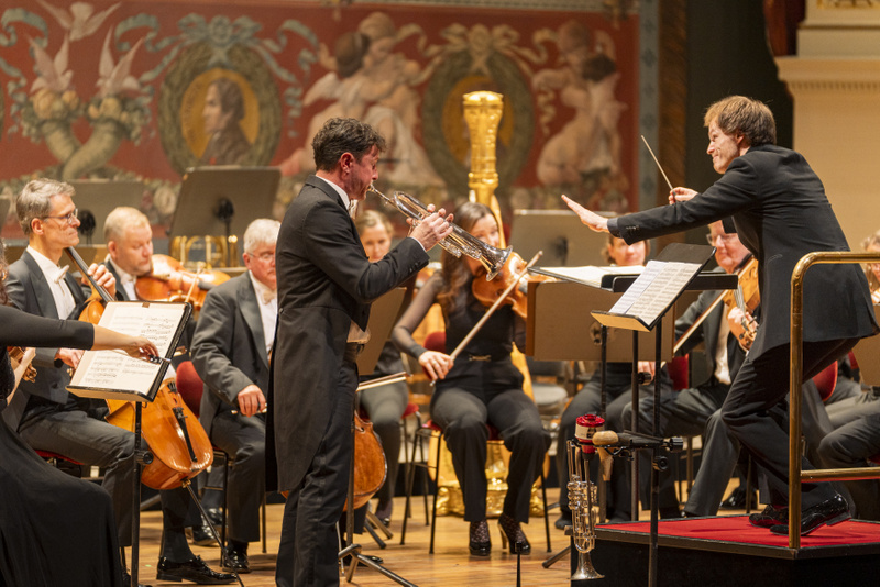 Weber hatte seine Variationen 1940 verfaßt, dreizehn Jahre später entstand das Trompetenkonzert Opus 23 des im vergangenen Jahr verstorbenen Siegfried Kurz. Es gehört unter den Werken in der zweiten Hälfte des zwanzigsten Jahrhunderts – ungewöhnlich für die Zeit und vor allem einen DDR-Komponisten – nicht nur eines der beliebten, es hat zudem einen hohen Wiedererkennungswert. Die Sächsische Staatskapelle hat es nicht nur uraufgeführt, sondern immer wieder gespeilt. Sven Barnkoth gehört seit 2005 zum Orchester (Stellvertretender Solo-Trompeter) und hatte sichtlich Lust und Laune, die virtuosen wie die kantablen Passagen zu meistern. Dabei lag ihm wohl besonders der Klang am Herzen, denn die Formung desselben geriet sehr weich und geschmeidig noch in den fanfarenähnlichen Teilen.