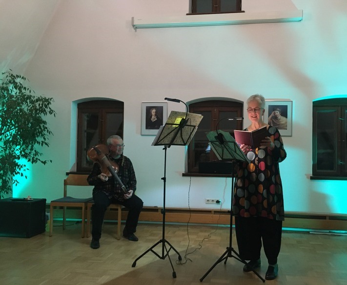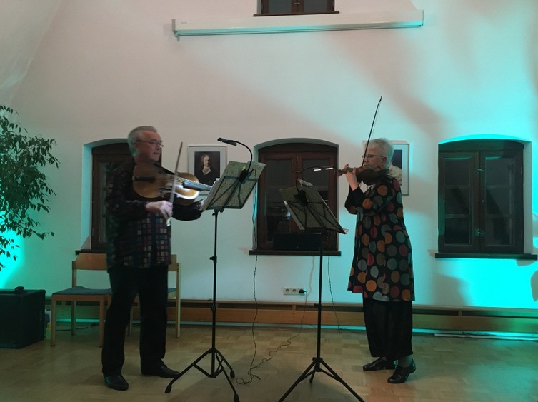 Für den vorläufigen bzw. offiziellen Abschluß gab es noch einmal eine neu arrangierte Auswahl – obwohl auch das Wiederhören freut. Zumal jede Aufführung anders ist – im Rahmen des Putjatinhauses war etwas intimer, statt zu viert wie zuletzt kamen Anne Schumann und Klaus Voigt außerdem allein. Die Viola da Spalla hatte daher bei den meisten Werken den Basso continuo allein spielen – das kann sie.