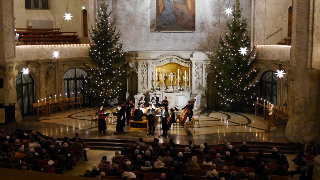 Oder auch die Musik von Andreas Hammerschmidt, der uns in dieser Weihnachtszeit bereits einige wertvolle Momente beschert hatte. Zunächst durfte der »Morgenstern« aber noch einmal aus dem Gesangbuch leuchten, wobei die sechste Strophe (»Zwingt die Saiten in Cythara«) im Satz von Johann Sebastian Bach nicht nur Holger Gehring dazu verleitet hatte, den Zimbelstern zuzuschalten, sondern manche Sänger den Anregungen und Ausschweifungen (oder Freudenrufen) in Bachs Notation zu folgen.