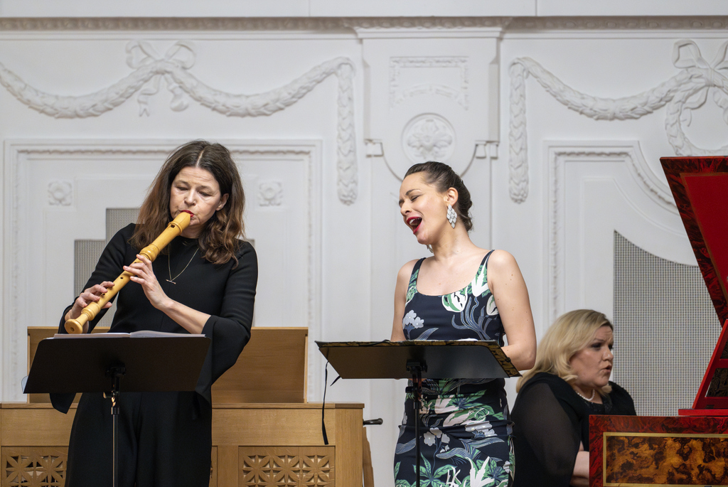 Der in Magdeburg geborene Telemann war der Anzahl der Werke nach am stärksten vertreten. Was aber auch die Wertschätzung von Dorothee Oberlinger und Anna Lucia Richter widerspiegelt, wie die beiden Damen im Nachgespräch freimütig gestanden. Die Kantaten »Ihr Völker hört« (TWV 1:921) und »Ergeuß dich zur Salbung der schmachtenden Seele« (TWV 1:448) sowie der Arie »Kein Mädchen auf Erden« aus »Pastorelle en musique« waren allerdings klangvolle Beispiele für Telemanns prickelnde Barockperlen – vielseitig und eben innovativ. Wobei er viele Freiheiten ließ und auf das Können der Musiker vertraute – also auch der Musikerinnen, die manchen gewitzten »Schlenker« einbauten, wie das blitzende Sopranino (ursprünglich Traversflöte) im accompagnativ ausgelegten Rezitativ »Die Finsternis verstreicht« in TWV 1:921.
