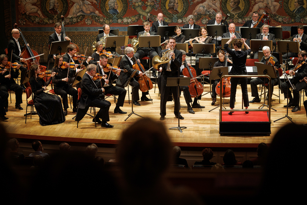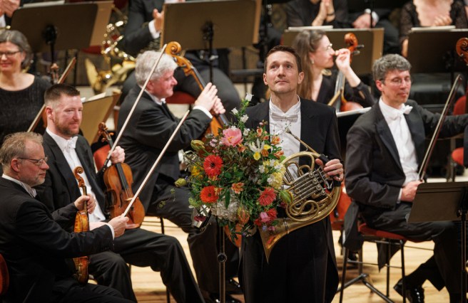 Während Florian Franneks Ouvertüre nicht sofort klar zuzuordnen war, erwies sich Strauss sogleich als typisch – große Oper! Und mit Robert Langbein stand ihm ein arioser Sänger zur Verfügung. Denn das Solohorn glänzte mit allen Attributen, die auch einen Helden auf der Opernbühne ausstatten: Artikulation, Eloquenz, Geschmeidigkeit sowie die Fähigkeit, binnen kurzem Szenen zu beleben, ein Crescendo zu schmettern (oder dies anzudeuten), ohne dabei das Legato zu vernachlässigen – fabelhaft! Im Andante con moto formten Solist und Orchester eine Romanze mit ausgedehnter Kantilene, bevor sie im Schlußparcours die Qualitäten Allegro vom Anfang ins Rondeau transferierten. Dessen Reiz steigert sich noch, weil das Solohorn hier mit den Orchesterhörnern verschmilzt.
