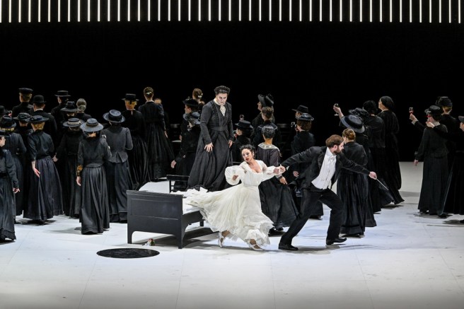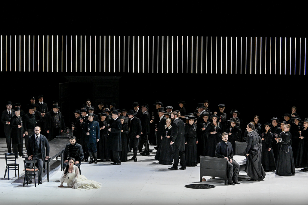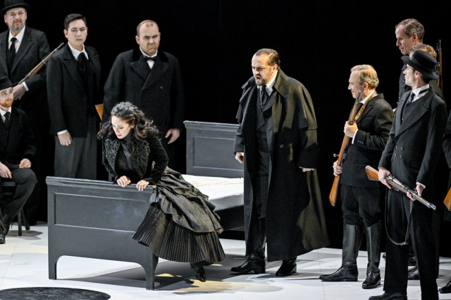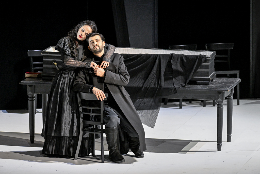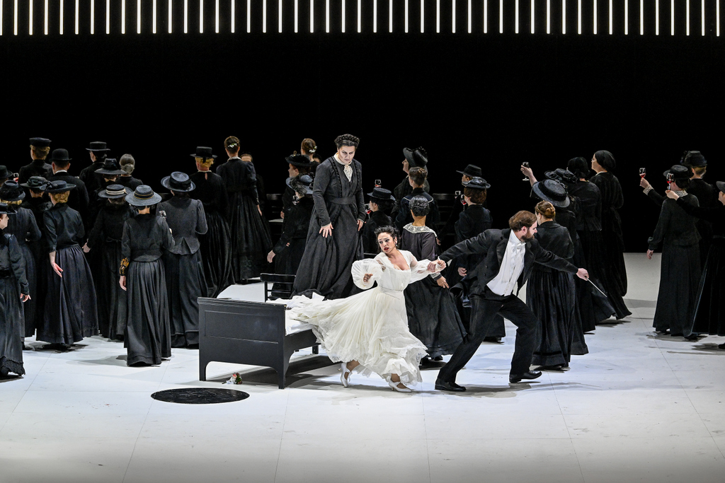 Aber bei Donizetti erwartet man wohl vor allem den Gesang und Solisten, die mit ihren Stimmen und in den Rollen die Farbe beisteuern. Und auch wenn am vergangenen Sonntag das von vielen erwartete Hausdebüt von Pretty Yende (Absage internationaler Engagements aus privaten Gründen) ausfiel, wurden die Farben letztlich musikalisch lebendig. Das lag vor allem an Ruth Iniesta, die sich als glänzende Besetzung für Miss Lucia Ashton erwies, sowie Bekhzod Davronov als Sir Edgardo di Ravenswood. Dem Paar wird von der Familie Lucias übel mitgespielt, die Briefe abfängt und fälscht, um ihre Liebe zu verhindern. Denn Bruder Lord Enrico Ashton (Neven Crnić) sucht strategisch, seine Partei zu stärken und will, daß Lucia Lord Arturo Bucklaw (Omer Kobiljak) heiratet. Das zu erreichen, ist ihm jedes Mittel recht.