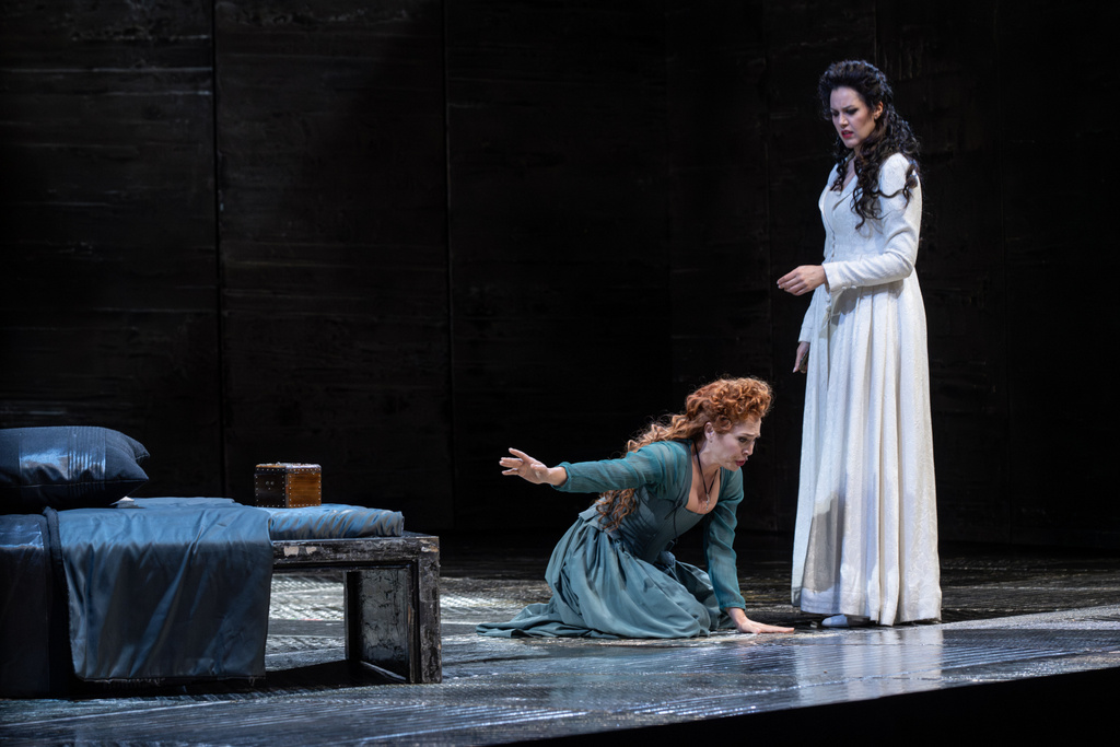 Überhaupt war die Musikalische Leitung wesentlichstes Element des Abends, obwohl die Oper dem Namen nach und die Besetzungsliste mit Jonathan Tetelman in der aktuellen Serie einen besonderen Helden ausweist. Ob in unheimlich dräuenden Piano-Passagen, zu Macht- (nicht Schicksals-)schlägen Philipp II. oder dem Feuer des Autodafé – aus dem Bühnengraben kamen Klänge, die leise schleichend einhüllten, urplötzlich hereinbrachen oder wild aufflammten. Damit »bediente« Sir Donald Runnicles nicht nur die emotionale Auslegung von Rollen und Erzählung, er verband die Musik mit der subtilen Regie von Marco Arturo Marelli (Inszenierung, Bühne sowie Licht) zu einem eindrücklichen Bühnengeschehen, wie man es selten erlebt. Vergleicht man das mit anderen Inszenierungen, die stärker auf Machtsymbolik oder Konflikte fokussieren, vertieft sich der Effekt noch.
