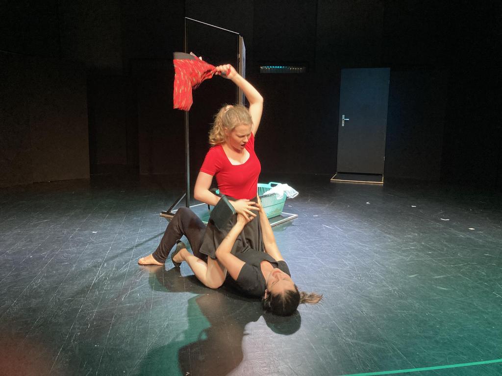 Insofern war Marzellines Arie aus »Fidelio« (Beethoven) mit Sarah Keller ein sehr konzentrierter Höhepunkt. Gleich im Anschluß (nächster »Sprung«) ließ sie als Susanna mit Sarah Rößler, welche nun die Marcellina aus Mozarts Figaro spielte, die Funken fliegen bzw. stritten die beiden inbrünstig um eine Männer-Unterhose (oder ging es um mehr?).