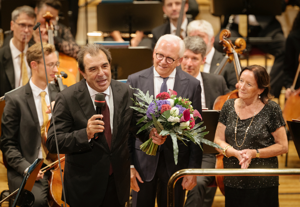 Das bedarf, beim Hören wie beim Spielen, einer bewußten Annäherung. Chefdirigent Daniele Gatti hat schon in seiner ersten Saison bei der Sächsischen Staatskapelle gezeigt, daß es ihm mit Mahler ernst ist. Das wird nicht nur im Publikum, sondern darüber hinaus wahrgenommen. Es ist schließlich der erste Mahler-Zyklus der Kapelle überhaupt, den der Mailänder in drei Spielzeiten aufführen will. Man staune: die siebente Sinfonie hat das Orchester noch nie gespielt! Deshalb soll er auch festgehalten werden. Zur Spielzeiteröffnung am Sonntag wurde der Sächsischen Staatskapelle Dresden von der Stiftung Semperoper der Rudi-Häussler-Preis übergeben. Die Förderstiftung, vor über 30 Jahren von Rudi Häussler ins Leben gerufen, hat seither über 20 Mio Euro eingeworben und Projekte unterstützt. Um den Mahler-Zyklus nicht nur aufzuführen, sondern aufzuzeichnen, unterstützt sie die Sächsische Staatskapelle daher nicht nur mit dem Preisgeld (10.000 Euro), sondern hat zusätzlich 100.000 Euro für die Aufnahmen bereitgestellt.