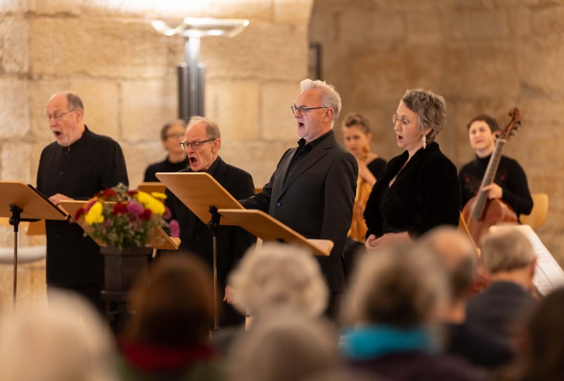 »Himmlisch Maß und irdisch Klang, Erdverwurzelte und himmelsstrebende Werke« versprach das Programm, und spielte damit nicht nur auf die Klänge von Heinrich Schütz, Johann Christoph Bach, Matthias Weckmann und Franz Tunder an, sondern auch auf die vertonten Texte. Teils stammten sie aus Büchern der Bibel, teils waren sie anonym überliefert, aber es gab ebenso namentlich bekannte Urheber.
