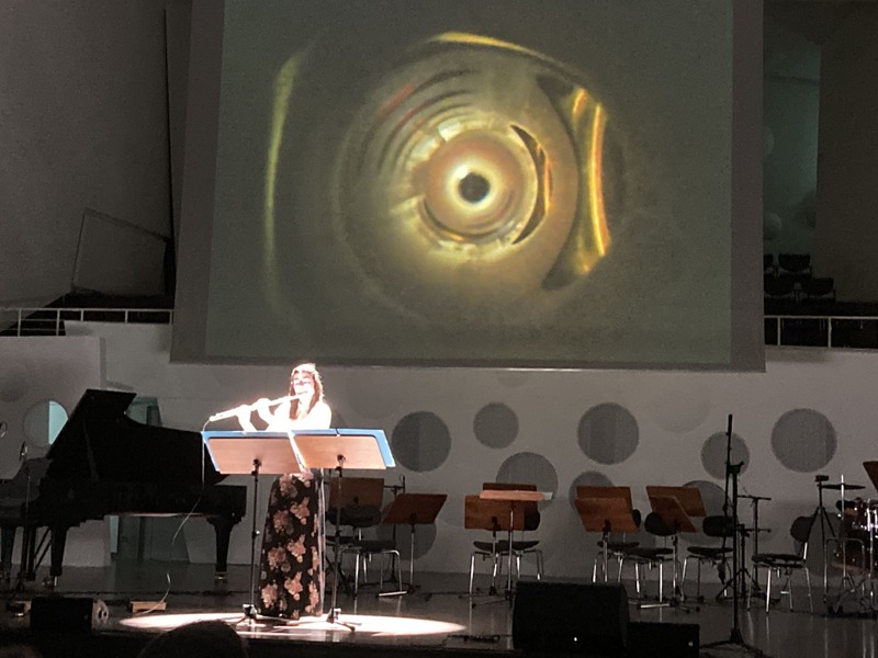 In »innermost tidings of the tube« (»Der Röhre innewohnende Neuigkeiten«) für Flöte und Endoskopkamera spielte Lucija Mikuž eine zunächst leise Sequenz, die sich mit kleinen Wandlungen stetig zu wiederholen schien. Die Kamera zeigte dazu das Bild des mal dunklen, dann (bei geöffneten Klappen) vom Licht erhellten Inneren der Flöte. Obwohl diese in verschiedenen Lagen und Flageolett ganz unterschiedliche Ebenen darstellte, wohnte dem Werk doch eine große Ruhe inne.