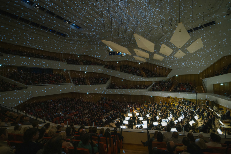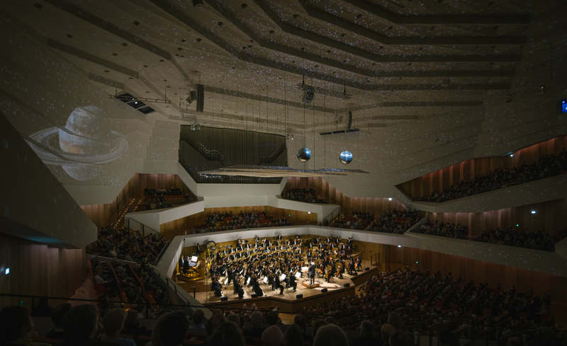 Daher ließ sich weit mehr in Gustav Holsts Suite entdecken als fröhlicher Tumult oder martialisches Vorwärtsdrängen. Vielleicht strahlte der »Saturn« am vielschichtigsten, in jedem Fall barg er eine hohe Binnenspannung. Das Orchester konnte über alle Bläser- und Streichergruppen bis in Harfe und Schlagwerke zeigen, welche Farben es zu entfachen versteht – der vielgehörte »Jupiter« entfaltet eine majestätische Macht. Eisig, sogar das Bild der Projektion schien eingefroren, verabschiedete sich am Ende »Neptun«. Blau war die Orgel angestrahlt, während die Frauenstimmen des Philharmonischen Chors Dresden (Einstudierung: Iris Geißler) wie ein eigenes Instrument oder zusätzliches Register seitlich aus dem verborgenen drangen – zuletzt war nur noch Sir Donald Runnicles im Licht, bevor alles in Dunkelheit versank.