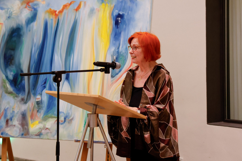 Darüber hinaus gibt es weitere Gemälde der Künstlerin, die sich unter anderem mit dem Wiederaufbau der Dresdner Frauenkirche befaßt hat und dort – als einzige! – auf der Baustelle Motive sammeln durfte, die kurze Zeit später in Bildern festgehalten wurden. Einige dieser Arbeiten sind ebenso zu sehen wie neueste Werke, die sich auf Richard Wagners »Ring« beziehen.