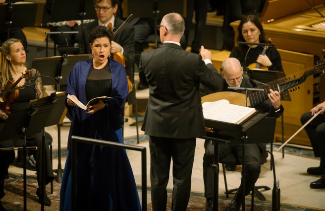 Griet de Geyter vervollständigte das Solistenquartett, ihr Sopran wirkte im Vergleich aber etwas kleiner (allerdings wartet das Weihnachtsoratorium erst in der vierten Kantate mit der Echo-Arie für den Sopran mit so einen Höhepunkt für die Stimme auf, wie er für Alt, Tenor und Baß schon in den ersten drei gegeben ist). Sophie Harmsen sorgte mit zwar schlanker Stimme, aber sehr einfühlsamer Gestaltung für ein paar der berührendsten Momente. Marias Wiegenlied (»Schlafe, mein Liebster«) gehörte ganz sicher dazu. Die Altistin wußte aber noch in den Rezitativen Akzente zu setzen, wie in »Ja, ja, mein Herz soll es bewahren« mit der darin eingeschlossenen, betonten »Seligkeit«.