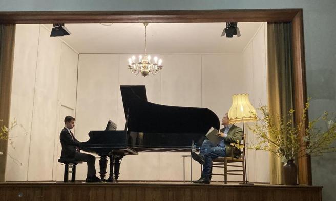 In dieser Woche mußte Robin Gaede eine kurzfristige, krankheitsbedingte Absage des Tenors hinnehmen. Allerdings hatte der Kantor gerade am Sonntag mit dem »Wassersommelier und Feingeist« (Programmankündigung) André Uhlig einen Abend mit Orgelmusik und unveröffentlichter Lyrik André Uhligs in der Christuskirche gestaltet. Das lief offenbar gut, denn André Uhlig kehrte am Dienstag noch einmal zurück, diesmal ins Gemeindehaus, wo das »Alte und Neue Testament« auf einem wunderbar historischen Bechsteinflügel präsentiert wird.