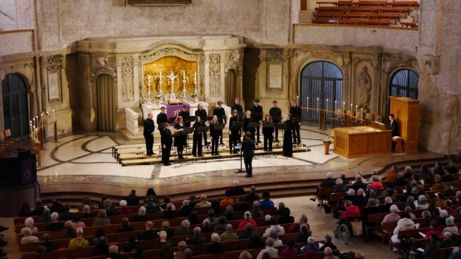 Vielleicht war Besinnung ein musikalischer Kern, auf den der Ex Silentio Kammerchor abzielte. Mit Giovanni Pierluigi da Palestrinas Kyrie (aus der Missa Papae Marcelli) und seiner berückenden Polyphonie traf er ihn hervorragend! Die Spannkraft zwischen den strahlenden Kyrie- und den innigeren, solistischeren Christe-Zeilen war beeindruckend und enorm.